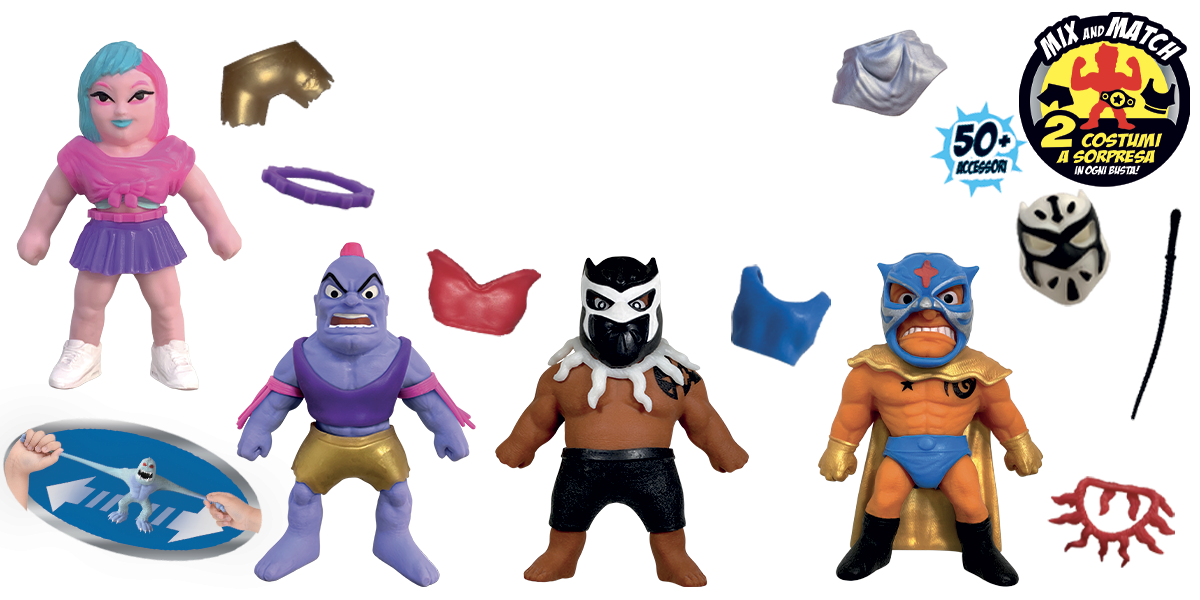 Fai indossare tutti gli accessori ai tuoi Elastikorps ™ Wrestling: sono più di 50!
