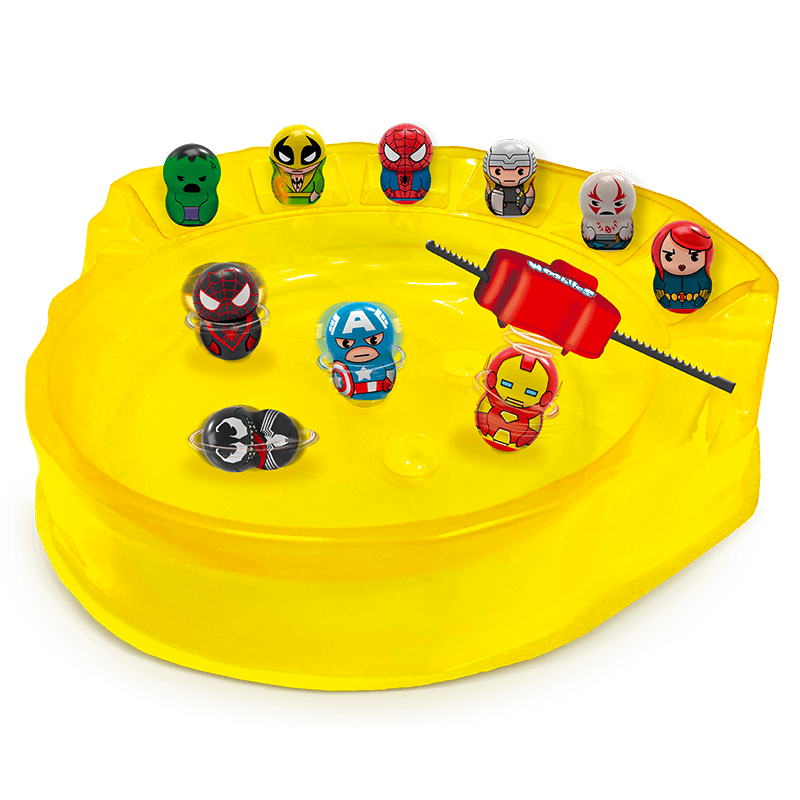 Launch your Marvel Wooblies and challenge tour friends! Whoever gets further, wins!
