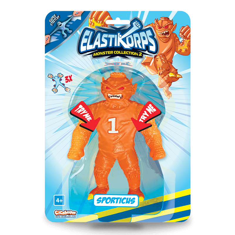 Sporticus est l’Elastikorps le plus compétitif de tous : chaque jour est pour lui un défi à qui s’allonge le plus, à qui réussit à revenir à la forme originale en premier et à qui réussit à effrayer le plus d’enfants…et ne perd jamais !