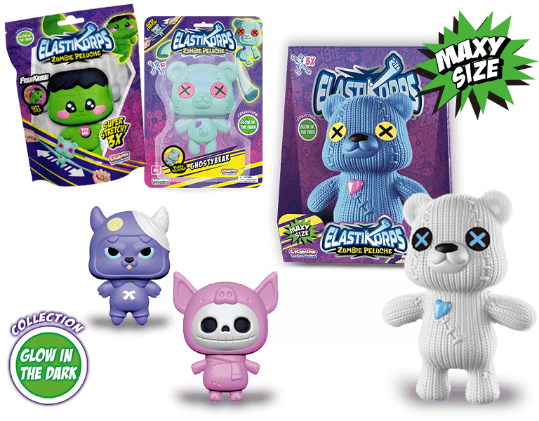 Scopri tutte le consistenze della nuova collezione Zombie Peluche: 6 peluche elastici e 4 MAXY Size!