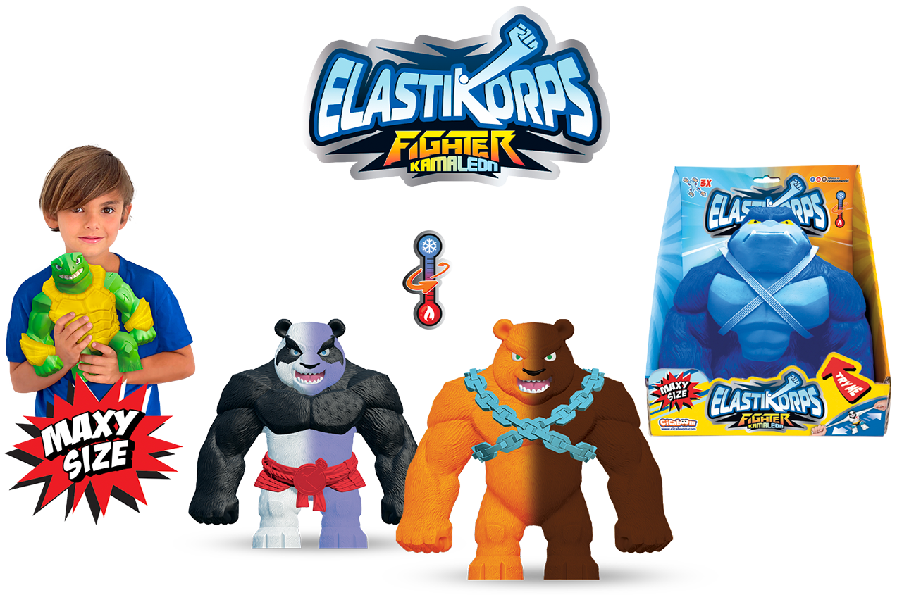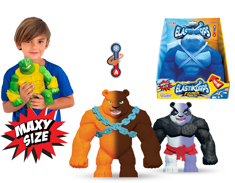 Collezione Elastikorps 3: 12 nuovi personaggi, tra cui 2 glow in the dark e 2 gold & silver; non perderti i 4 nuovi maxi size! Scopri la novità assoluta: Maxy Kimba è il primo maxi size da 2 kg che si illumina al buio!